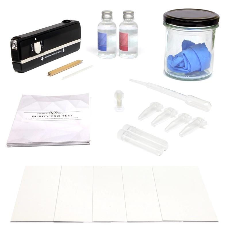 Stimuliantų Grynumo Testavimo Rinkinys skirtas kristaluose, tabletėse, milteliuose ar tirpaluose esančių medžiagų kiekiui ir grynumui patikrinti. Šis plonasluoksnės chromatografijos (TLC) rinkinys geriausiai tinka amfetaminui, kokainui, CMC, mefedronui (MMC), MDMA ir kt.